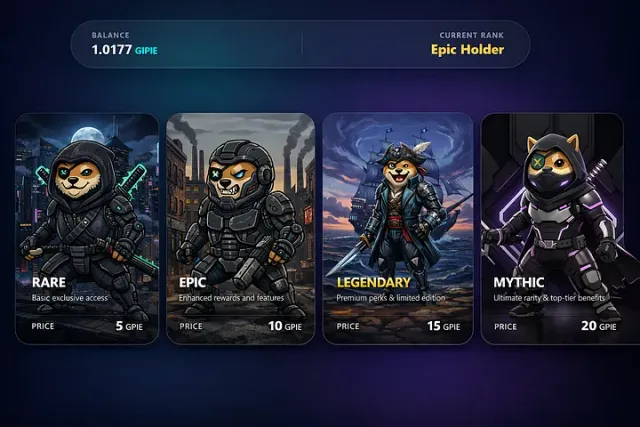 Our NFT collection consists of four distinct tiers, each with unique pricing and benefits. Notably, NFT holders receive complimentary access to our periodic Raffle events. These events offer prestigious rewards, including BNB, USDC, or Gipie tokens, as a token of appreciation for our supporters’ loyalty.
